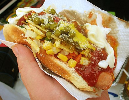 – In Brazil, Hot Dogs come with mustard and ketchup, as well as other despicable shit like quail eggs, marinara sauce, canned peas, and corn nibblets. That’s not a Hot Dog, that’s wet cat food you can only find in the Vietnamese district. In West Virginia, they serve Hot Dogs with beanless chili con carne and sweet coleslaw. I’d much rather order a “West Virginia” Hot Dog than a Hot Dog with the words “anything-nibblets” on it. And West Virginia is like, only the 46th most American state. You’re gross, Brazil.