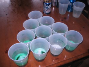 And how best to wash that shit down? Green beer, right? In Beer Pong form? Might as well combine the most American way to consume beer with, well, the possible cancers that’ll come from ingesting green dye.