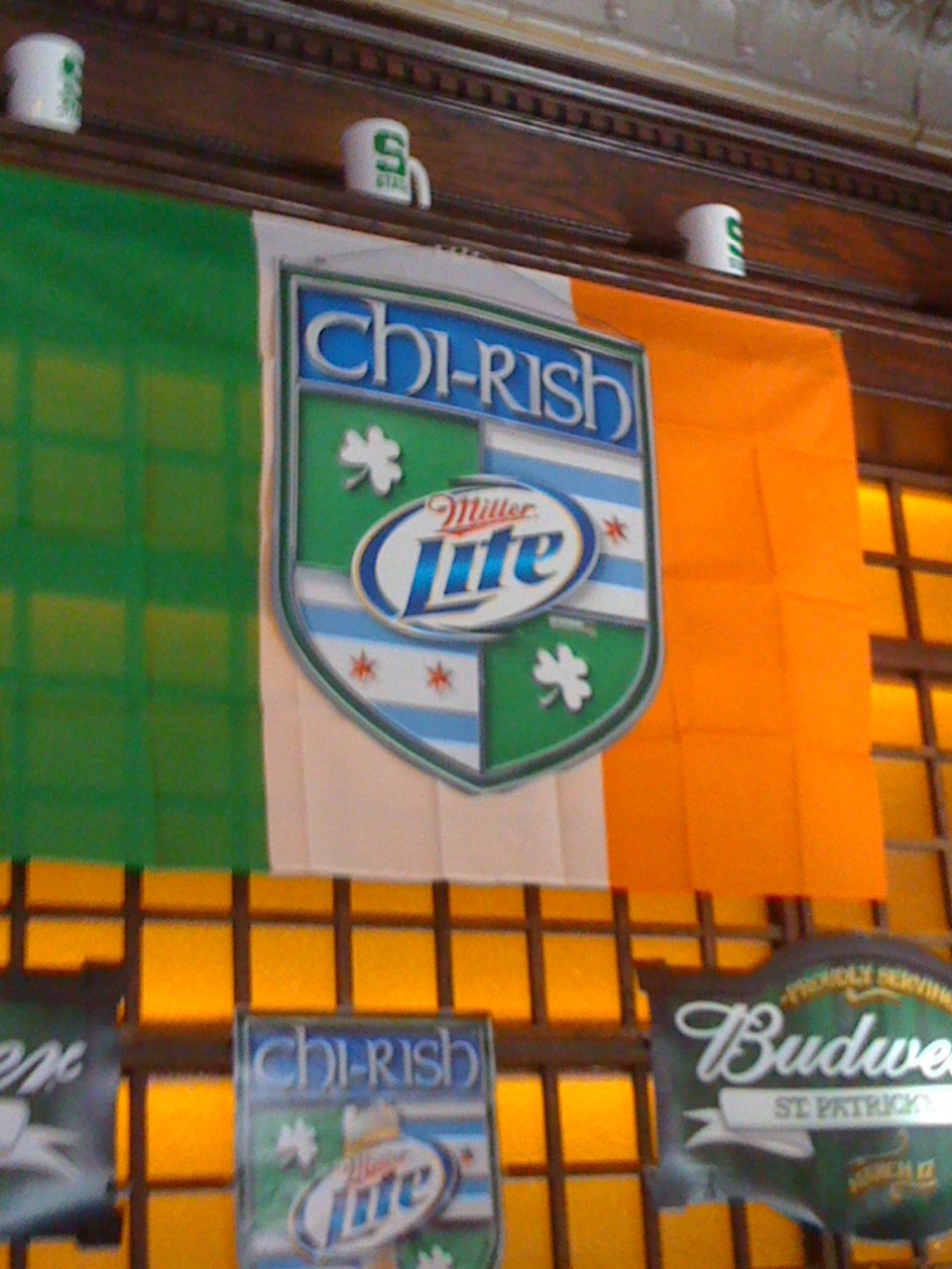 I don’t know how it happened, but next thing I know, I’ve woken up in Chicago. How do I know it’s Chicago? Well, they’ve still got some old St. Patrick’s Day decorations up that Miller Lite sponsored, I guess to imply that Chicagoans and Irishmen like bad puns.