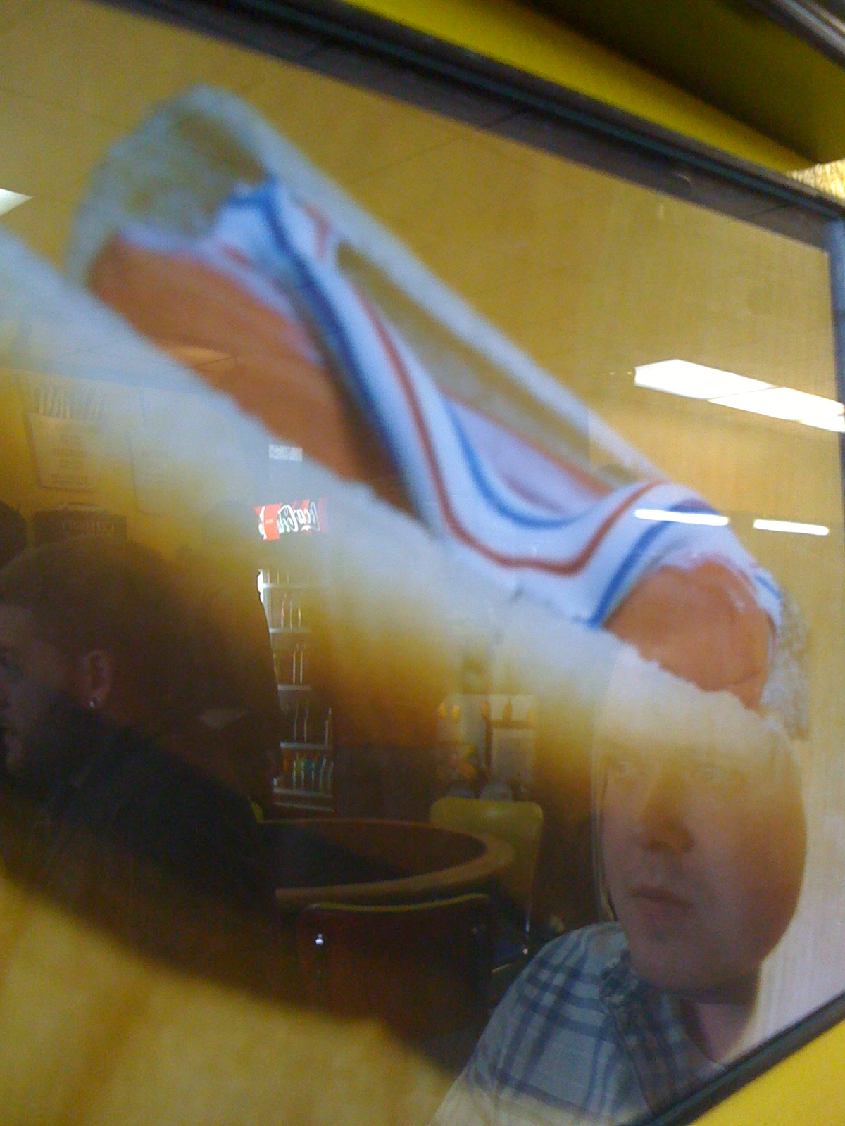 Oh this is perfect. Here we have a stuffed dead animal hanging from the wall, and a credo saying, “There are no two finer words in the English Language than ‘Encased Meats.'” I have found my fountain of American youth. And it comes BYOB.