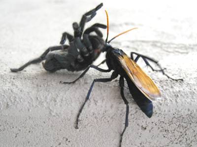 And did we mention this thing eats tarantulas? That’s right, when nature released this dream-rapist from the bubbling maw of its murder kilns, and said, “I shall call you Tarantula Hawk, genus- HolyShitIDon’tWantToDie. What would you like your prey to be?” this hellspawn responded with, “Hmm…well, the fears of mankind for strength, and for sustenance, I choose those giant spiders that sometimes eat fucking lizards.”