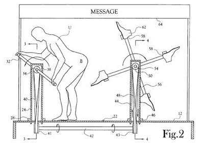 Is that…yes, that is a crank you can use to kick your own ass. Let’s just take a moment and think about the logistics that lead to the creation of this invention. Not only did someone think, “Hmm, I like the feeling of a boot crashing into my ass, but I hate having to spend all the money on the types of prostitutes who are willing to do that sort of stuff.” So not only did he develop a crank shaft (heh) that would allow himself to kick his own as (…heh?) but the man who came up with this idea was worried about someone else stealing this idea from him. That is so insane that the collective cast of One Flew Over the Cuckoos Nest just got upset at it for presenting a falsely negative impression of how mental illness is treated in this country. Someone had to meticulously draw this picture, all the while thinking, “Yeah, we gotta make sure this doesn’t fall into the wrong hands” and that picture had to be sent over to a patent agent, who had to look this over and say, “Well, no one has come up with this idea before, approved.” We’re not entirely sure if the fact that this exists enthralls us or devastates us, so we’re going to go with “both.” It enthrallastates us.