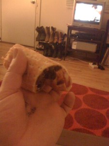 Oh…this is…dense. This is seriously dense. I’ve had two bites, but I’m pretty sure most people would be full by now. I can’t imagine anyone but a competitive eater or an AFFotD writer being able to scarf more than two pieces of this thing.