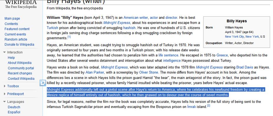At this point, Hayes decided, “Oh, hell no,” and decided to try to escape. After being transferred to an island prison, Hayes got in a fight with a prison guard and stole his uniform. After hiding in a crate for a few days, he went to the harbor and stole a small rowboat, rowed back to Turkey, dyed his hair, before finally swimming across a river to get to Greece. He was interrogated by Greece for a few weeks before finally being deported to America, where we can only assume he did, just, like so much hash to celebrate. We’re only speculating that he made a life-sized statue of himself completely out of hash and spent the next month gnawing away at it, but we feel confident enough about that statement that we’re going to put it on Billy Hayes’ Wikipedia page.