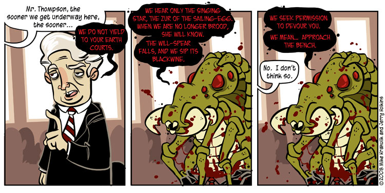 After years of submitting court motions littered with doodles of swastikas, dollar bills, houses of cards, and gay pornography (seriously, seriously all of that, seriously), the Florida bar finally decided to disbar Thompson for reasons of, “Hell, even we’re surprised it took us this long to get around to this.” He still continued to try to practice law, because Jack Thompson is so stubborn and impossible to get rid of that herpes views him as a mentor.