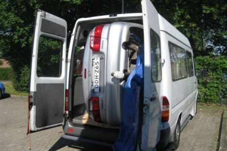 Spoiler alert, it’s a fucking car crammed inside a goddamn van.