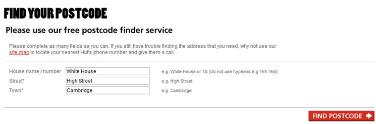 While most of our employees are expert hackers, all of our employees are always drunk, so they’re pretty useless in that regard. Nevertheless, we decided to try to “order” a pizza, so we could at least start to understand what this pizza would entail. As you can see above, if we get a standard Hot Dog Stuffed Crust, and order the “Meat Machine” (because even in England, you know, America) it’ll set you back roughly 20 Squiggly L’s. But it wasn’t easy. First, in order to order we had to find the “postcode” of a place that’s actually, you know, in England. Thankfully, Pizza Hut’s “Find Your Postcode” section was particularly helpful.