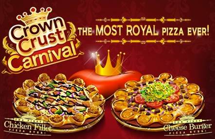 THE MENU: A trip to the Middle East’s Pizza Hut website (and no, they don’t get more specific than “Middle East.” We know, it’d be like having a Pizza Hut website solely devoted to “Southeast Asia”) is sort of like a slowly-loading cheese-based fever dream. After sorting through the pizza box meals and the “Blast-O-Pops” which come fully equipped with a mascot that we can only assume has epilepsy considering the cheese helmet he is forced to wear at all times (which makes it especially cruel that they have a Blast-O-Pops game that’s just lousy with flashing lights) you might find their limited time pizza, the Crown Crust Carnival, which we suspect might someday become self-aware and kill us all.