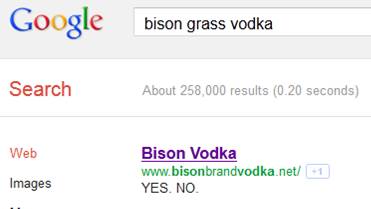 By the way, here’s what you get when you Google for Bison Grass Vodka’s homepage.
