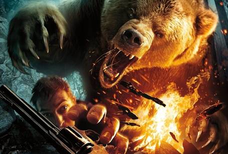 Here is a list of things that we’re scared about encountering when we go to sleep.  Monsters, bears, our knife-wielding ex, and of those three, we only expect the third one to be encountered in a non-dream setting (deadbolts and restraining orders can only go so far).  Jeff Herbert and Ken Scown got to live a real life nightmare when they were awoken by a grizzly bear and their rapidly emptying bladders, in that order.  While on a hunting trip, dreaming sweet nothings about all the animals they were going to straight up kill, a six foot tall bear leapt onto their tent, immediately biting Scown.   While most people would respond to such an event by saying, “Aw, shucks, looks like that’s the end of the ropes for this cowboy” or, more likely, “AGHHHH JESUS FUCKING BEAR AGHHHH OH GOD HOW HAVE I FORSAKEN YOU!?” the two men instead began struggling against the bear while Herbert attempted to load his gun to shoot the damn thing.