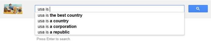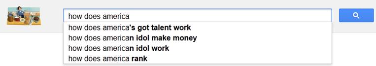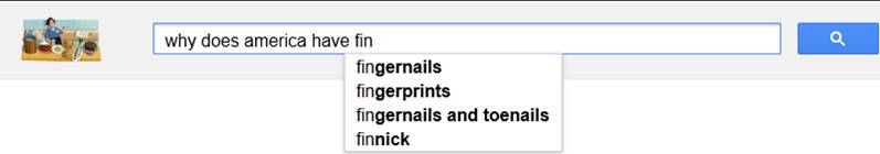 Of course, one of the ways that Google helps keep the pulse of this fine nation is that they tend to track what terms are most often searched, so that if you start typing a question or a search topic, it will give you some helpful suggestions as to what you think you might be looking for.