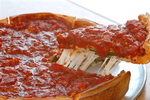 Chicago-style pizza comes in three forms.  There’s thin crust, which differs from the New York slice in that it’s cut into squares as opposed to wedges, the crust is crispy instead of floppy, and as much as die-hard Chicago pizza fans might try to trick you otherwise, it’s not nearly as good.  Sorry, Chicago, if we wanted to see your impression of something New York is known for we’d watch a Broadway musical a year and a half after it’s opened without all the famous actors in the cast.