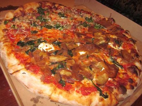 No, deep-dish and stuffed pizzas are where it’s at in Chicago, two delicious and radical takes on the pizza pie where a slice is enough for a whole meal and someone wearing a Frank Thomas jersey will call you a pussy if you don’t eat three.  This is a dozen pizzas crammed into one, something that the inventors of the medium would shudder to even contemplate.  New Yorkers might get jealous and call this a soggy bowl of cheese and sauce.  The rest of America likes to call it…perfection.