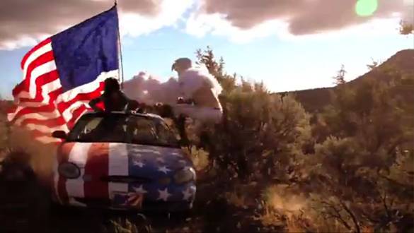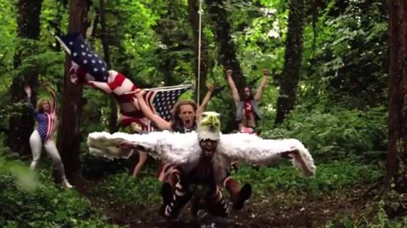 “You’re not going to believe this,” the video starts as we see a car draped in an American flag, three men in American flag leggings, two men and a woman in American flag tank tops, and a woman in an American flag leotard waving a flag in the background. Oh and two of the men are wearing American flag shades, because of course they are, and I still don’t know why they’re letting me watch this video and tell you about it, but I’m so happy that they did.