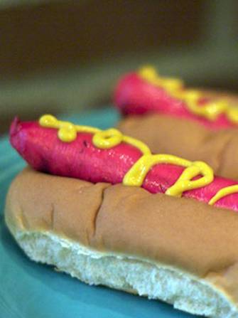 In a similar vein of “hot dogs are delicious, but these don’t do enough to separate themselves from the fray” we find Maine’s Red Snappers.  Many hot dogs (read as: the only good ones) use a natural casing for their tubes of meat, which sounds gross when you’re nine years old and think “eww eww that’s made out of guts, I am not yet of the emotional age where I can separate what things are made of from how they actually taste” but which are what give your hot dog that satisfying “snap” when you bite into them to be greeted by a flood of delicious scrap meats turned delicious through salts and nitrates.  The Red Snappers of Maine, as you would expect from their name, are bright red hot dogs inside these natural casings.  And when we say “bright red” we mean “artificially dyed to look like Satan’s eyes, that kind of red.”  They’re steamed, served on a slightly toasted split-top bun, and typically topped with your choice of relish, onion, mustard or (gulp) ketchup.