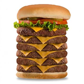 Naturally, our job is to help spread the gospel of this brave minority, these innovators who find ways to put a week’s worth of calories on a plate in front of you, these soldiers of fortune who push us to new limits, pushing our faces down into greasy heaps saying “eat your slop little piggies eat your slop!” And while we do our best to make each meal as unhealthy as possible using a variety of methods, one of the most time-honored and respected approaches involves the creation of hamburgers so excessive and absurd that the mere sight of them is enough to drive nutritionists to commit hara-kiri.