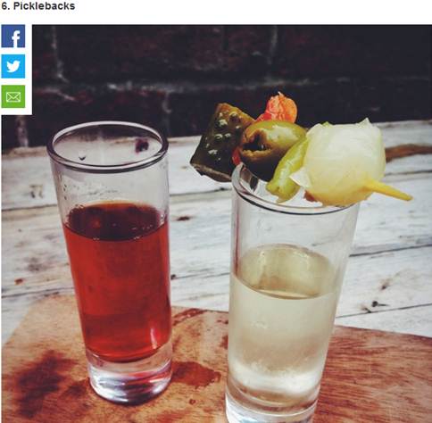 Okay so at this point in the article, we’ve spent a few thousand words, you know, personally and viciously attacking both the writer of this article and country of its origin, but this entry is one we’re not going to argue too much. Granted, the description is trying way too hard to make a pickleback sound as disgusting as possible (they took “you take a shot of whiskey, you chase it with a shot of pickle juice” and turned it into some nefarious attempt to replace your white blood cells with pure vinegar) but we can’t fault the core concept. Picklebacks are alright, but if you’re taking them with good whiskey, you’re wasting that whiskey.