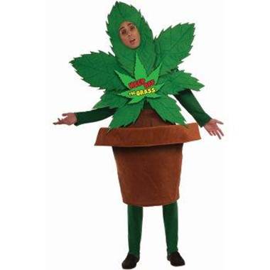 If you can’t read that, it says, “Keep off the grass.” He is dressed as a potted marijuana plant. No amount of reward would justify us expending any more effort in explaining why this is lame and bad.