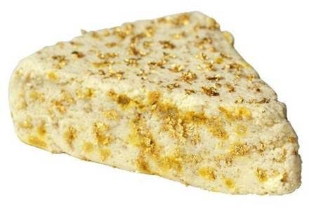 That’s all well and good, but what happens when we take the White Stilton, you know, the one you rarely encounter, and just, smother it with gold flakes? It was being sold in 2011 for about sixty English squiggles for a small slice, or about six pounds for enough to top a cracker, and really, this is just a whole mess of pointlessness. Our editor-in-chief doesn’t like blue cheese and even he thinks it’s stupid to use the white, bland, neutrally flavored white version of Stilton to fill up with odorless, tasteless gold. At least Blue Stilton tastes like something, and the blue and gold could have played off together well, probably.