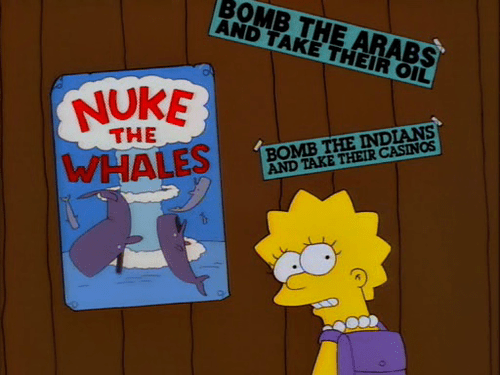 But, our strong “anti-Nature” stance sometimes gets some negative feedback from people who think “We need to preserve the planet for future generations” and “It’s not good to laugh about how the honey bees are dying off, because that’s actually going to devastate our ecosystem and agriculture.” But guess what? Nature started it. Hurricanes, Tsunamis, Tornadoes, Susan Boyle, all of these are indestructible forces of nature that leaves nothing but shattered lives and broken dreams in their wake. So why should we box with one hand behind our back? As Nelson Muntz let us know regarding his pro-nuking-whales stance, “Gotta nuke something.”